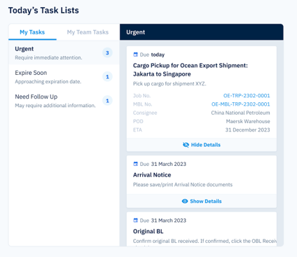 CargoShip Task Lists